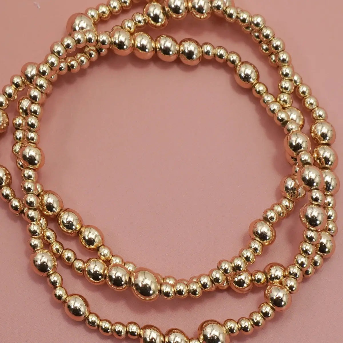 Elevate your everyday style with this stunning multi-layer bracelet featuring delicate ball chains in lustrous gold. Each strand drapes gracefully on your wrist, creating an effortlessly sophisticated look that transitions seamlessly from day to night. The lightweight design ensures all-day comfort, while the timeless gold finish pairs beautifully with any outfit. Perfect for layering or wearing solo, this piece adds just the right touch of elegance to your jewelry collection.