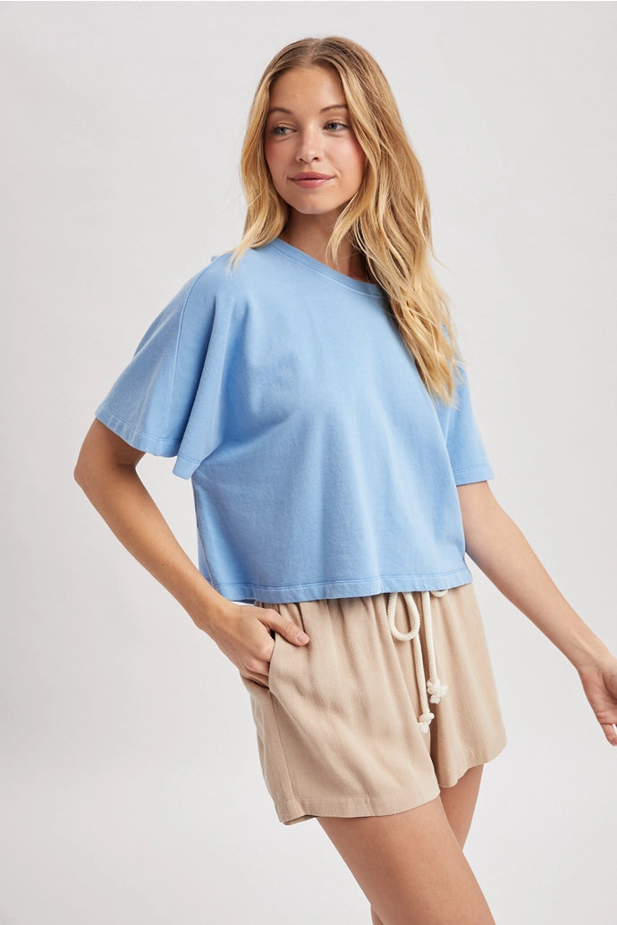 Effortless comfort meets everyday style with this relaxed crop knit top. Featuring flutter sleeves and a rounded neckline, it's designed for easy layering and casual wear. The roomy, relaxed fit makes it perfect for spring and summer days when you want to feel comfortable without sacrificing style. Pair it with your favorite jeans or skirts for a laid-back look that works from morning to night.